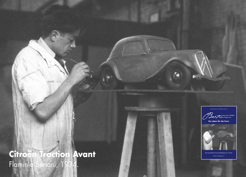 Als Anfang der dreißiger Jahre die Citroën-Designabteilung an einer Karosse für den kommenden Traction Avant scheitert, kommt die Stunde des Flaminio Bertoni: An einem Samstagnachmittag formt er seine Vorstellung vom künftigen Citroën zu einer fluiden Autoskulptur. Als das Modell am Montagmorgen André Citroën persönlich gezeigt wird, ist der sofort angetan. "Mit diesem Wagen werden wir jeden Concours d'Elegance gewinnen" sagt Citroëns Ehefrau Georgina schon am nächsten Abend: Der Startschuß für die Citroën-Ästhetik à la Flaminio Bertoni.